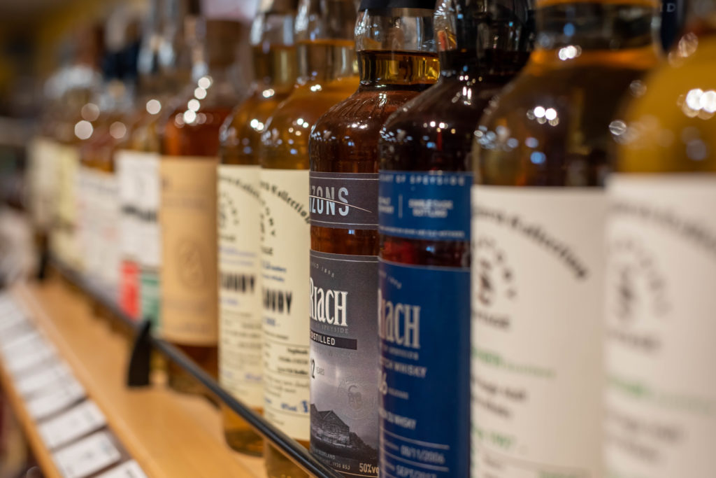 Une sélection de X whiskies, rhums, Gin et eaux de vie….